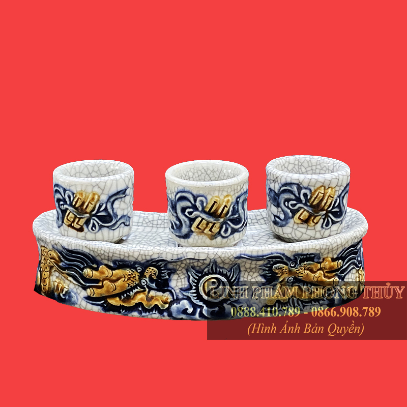 Bên cạnh đó, kỷ ngai cong 3 chén vẽ rồng men rạn được nung trong nhiệt độ cao lên tới 1300 độ C nên độ bền cao không bị bong tróc, bay màu gây mất thẩm mỹ của ban thờ.