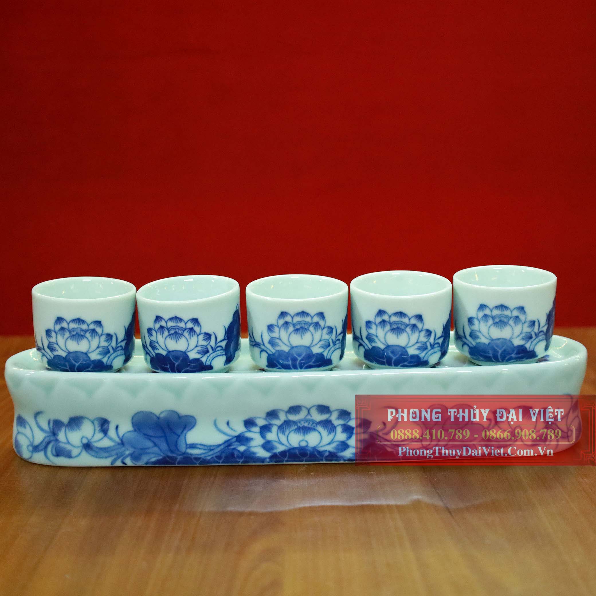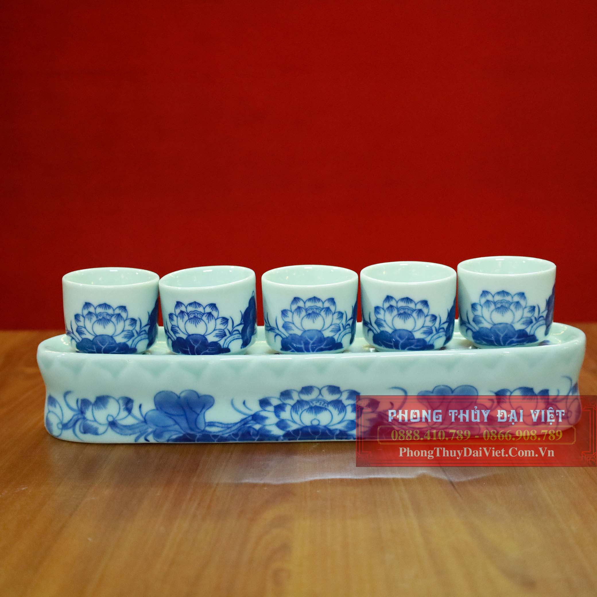 Bộ kỷ ngai 5 chén thẳng men ngọc Bát tràng