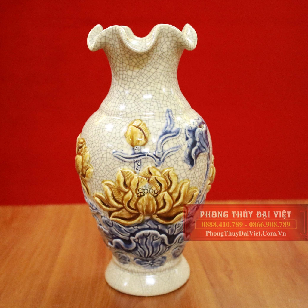 Lọ lượn sen men rạn đắp nổi Bát Tràng cao cấp