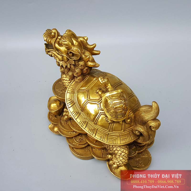Long Quy hay còn gọi là rùa đầu rồng, mang đầy đủ đặc tính của cả 2 loài nên đây được xem là linh vật rất linh thiêng. Với hình ảnh đầu rồng ngẩng cao, miệng há rộng oai phong, dũng mãnh. Trên lưng cõng rùa con, chân đạp trên núi tiền vàng. Sản phẩm được thể hiện vô cùng sắc nét, tinh xảo.