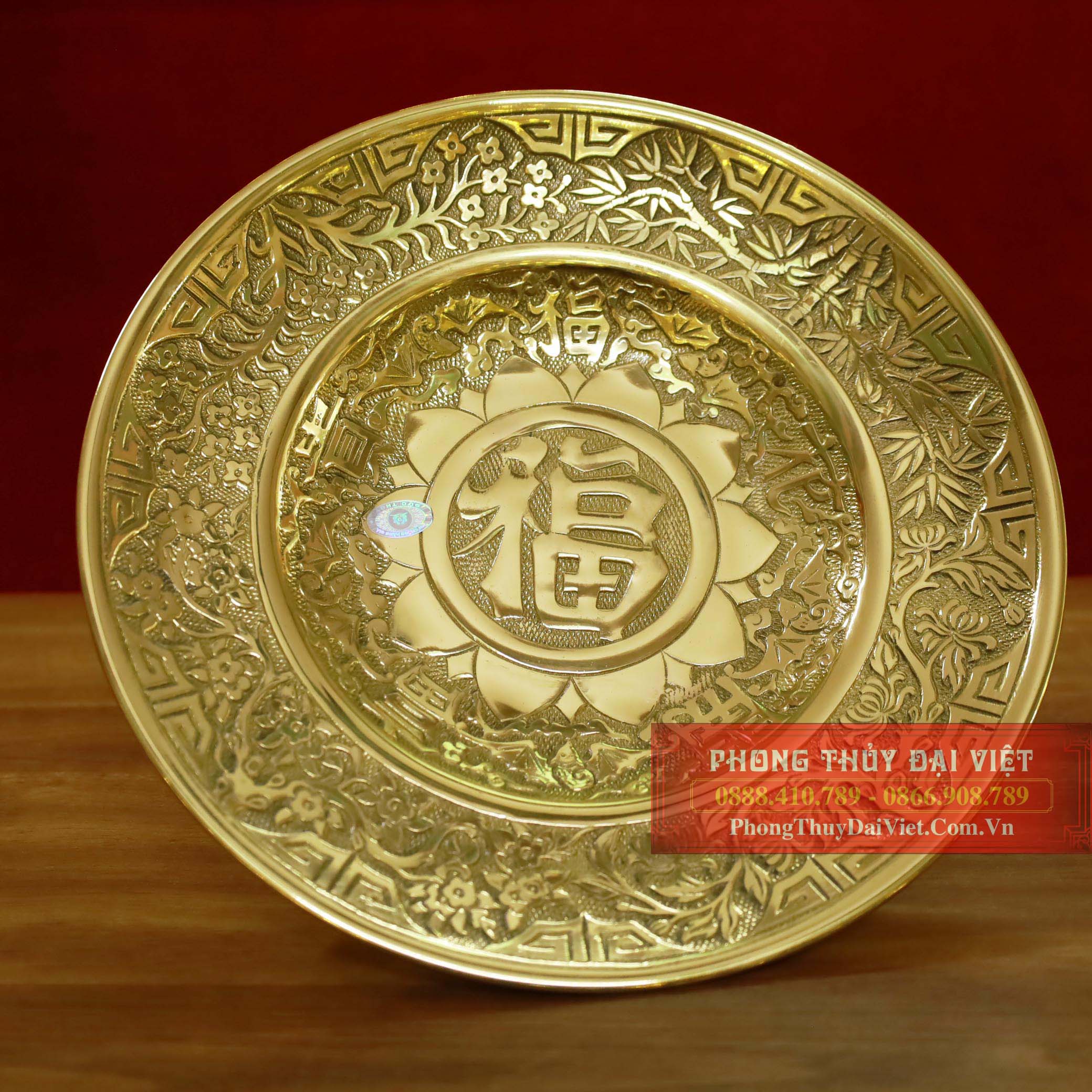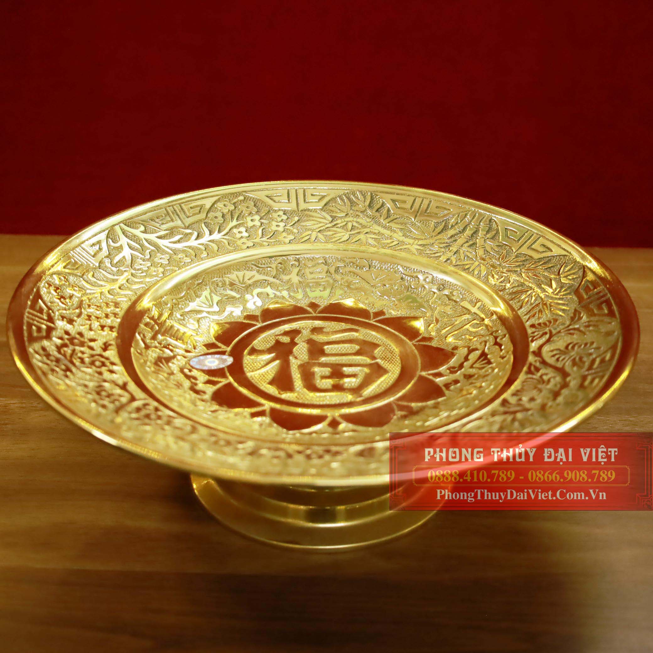 Mâm bồng chữ Phúc bằng đồng vàng bóng