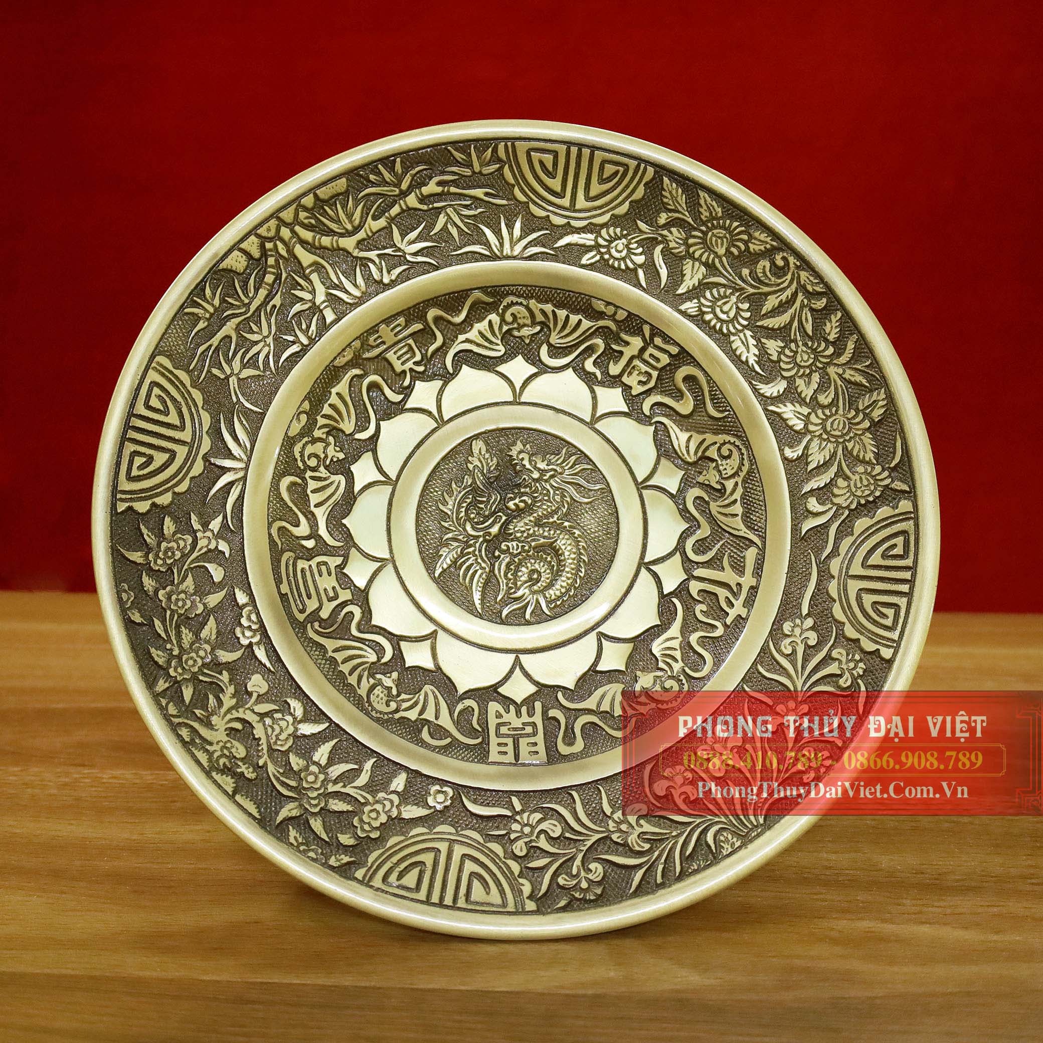 Mâm bồng rồng phượng bằng đồng nguyên chất hai công nghệ