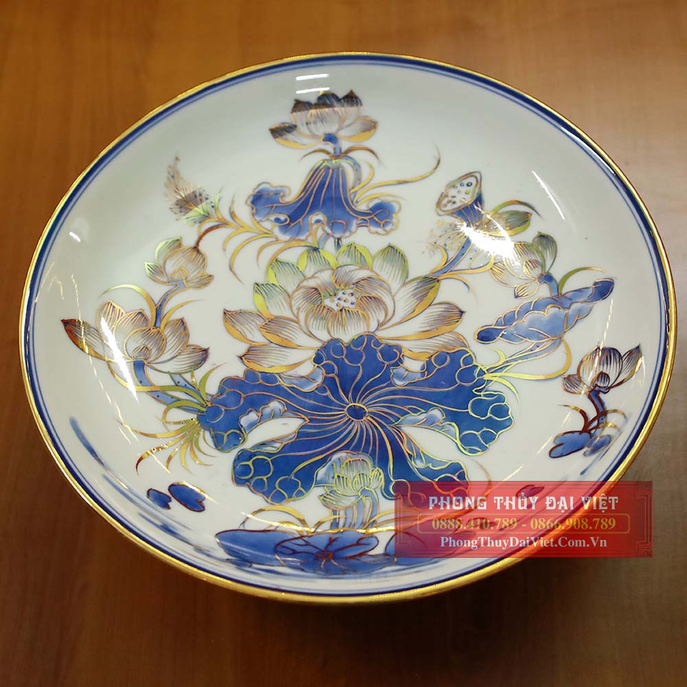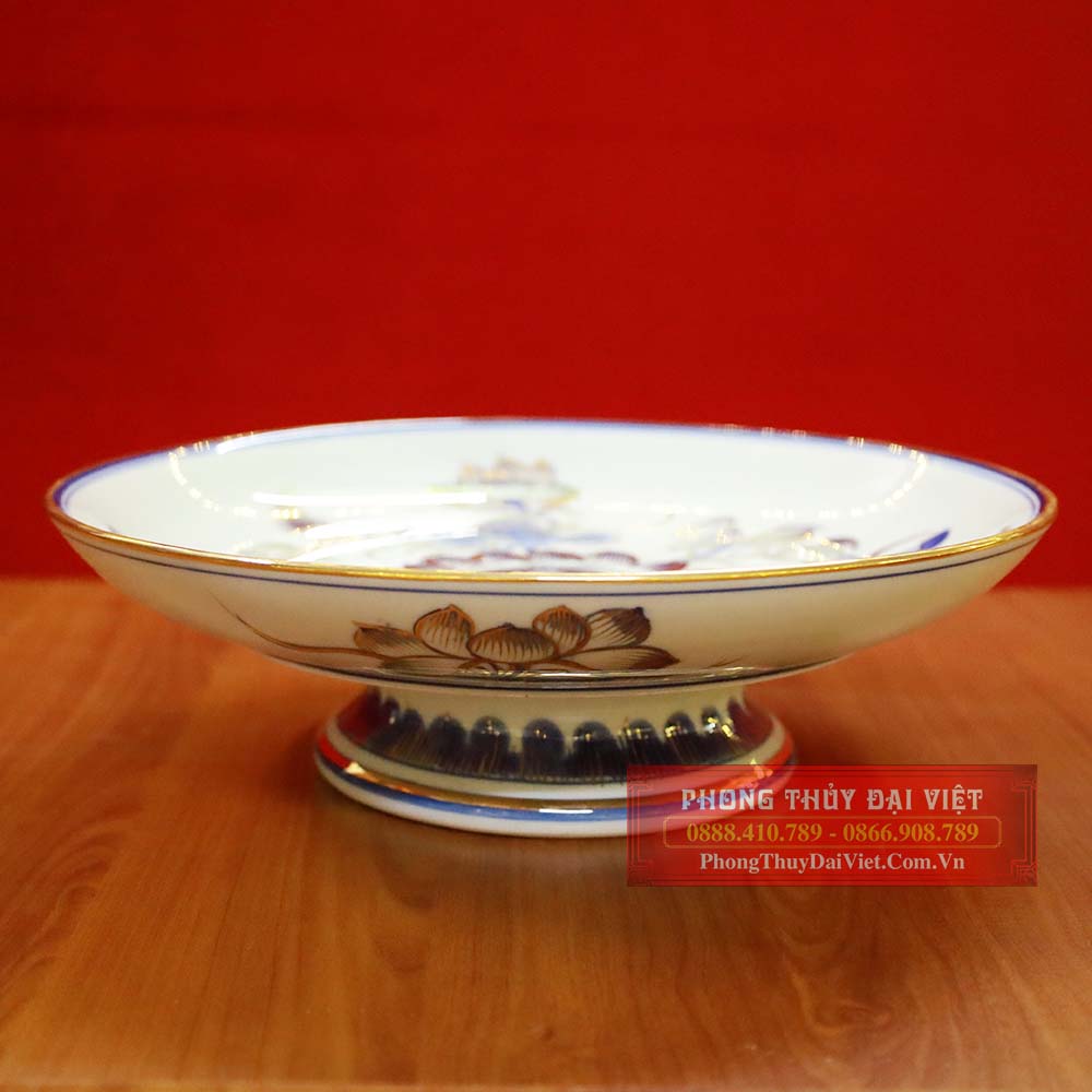 Mâm bồng men ngọc vẽ vàng 24k