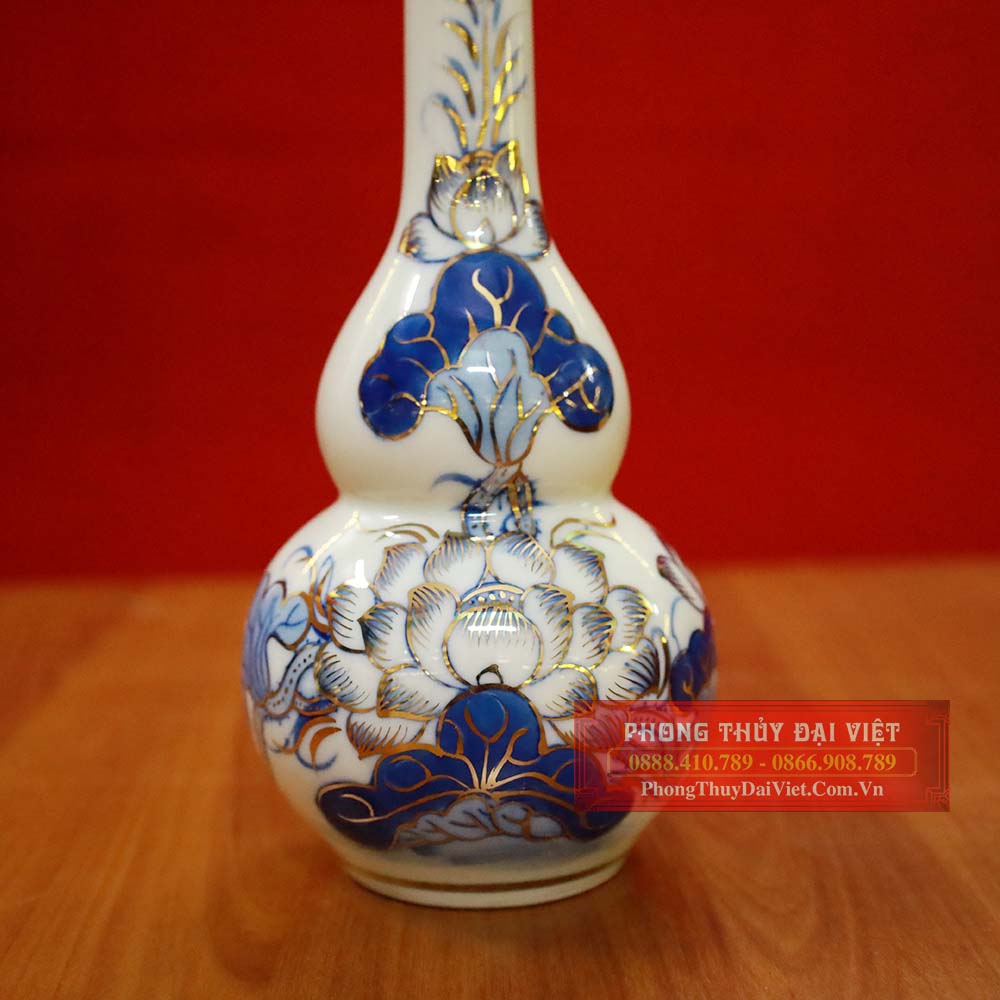 Nậm rượu với họa tiết hoa sen được vẽ vàng cực kì tinh tế và nổi bật. Từng đường nét cánh hoa, viền lá đều vô cùng mềm mại và sinh động như ngoài đời thực. Đây được xem là mẫu đồ thờ cao cấp với độ bền cao, sang trọng nên được nhiều gia chủ lựa chọn.