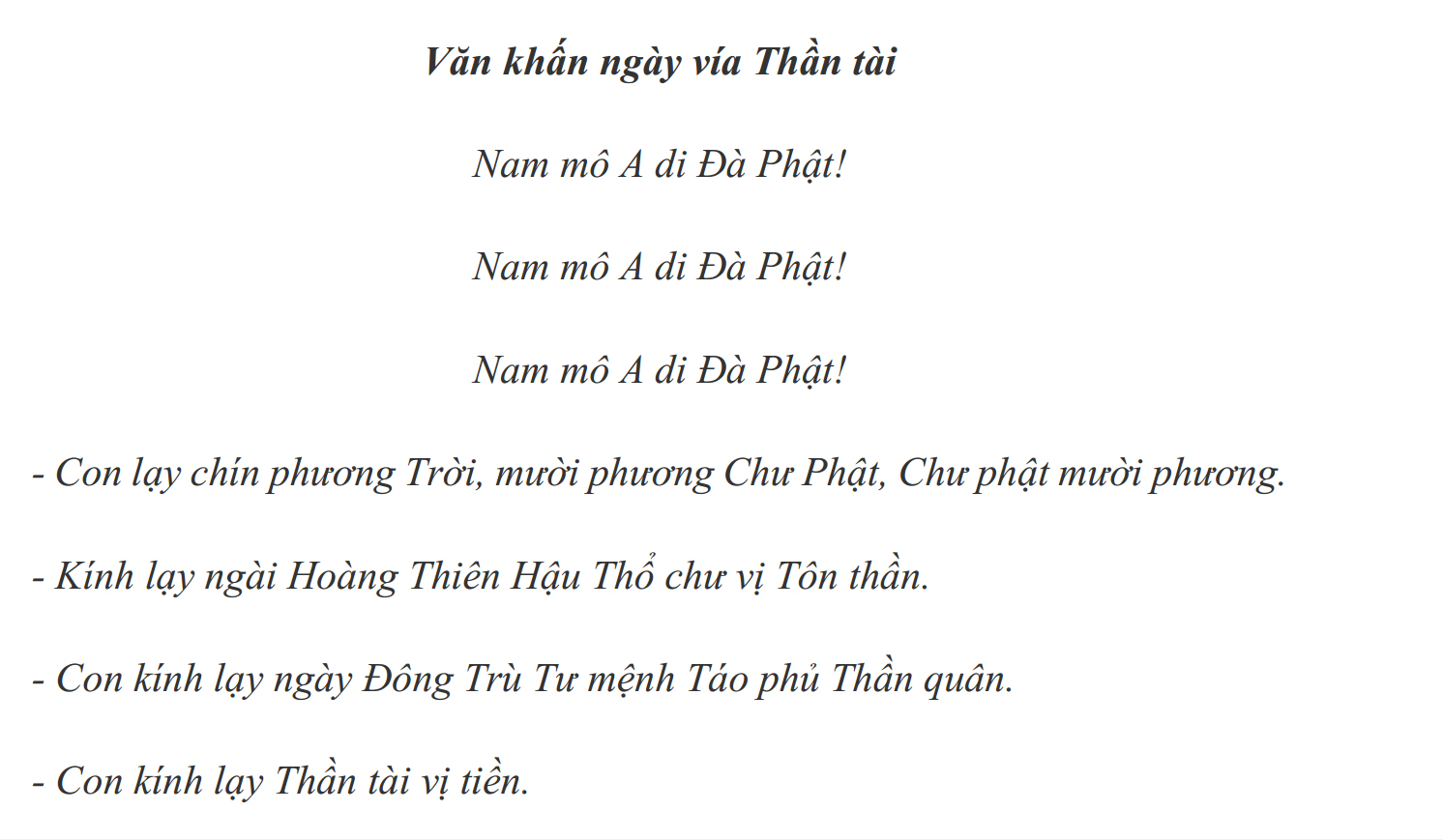 Tuy nhiên, gia chủ cũng không nhất thiết phải bày “mâm cao cỗ đầy” bởi thờ và cúng thần đều ở cái tâm của mỗi người. Nếu không thể có mâm cơm mặn, gia chủ có thể bày những đồ chay để bày tỏ lòng thành cũng không ảnh hưởng đến sự phù hộ, độ trì của Thần tài cho mình.
