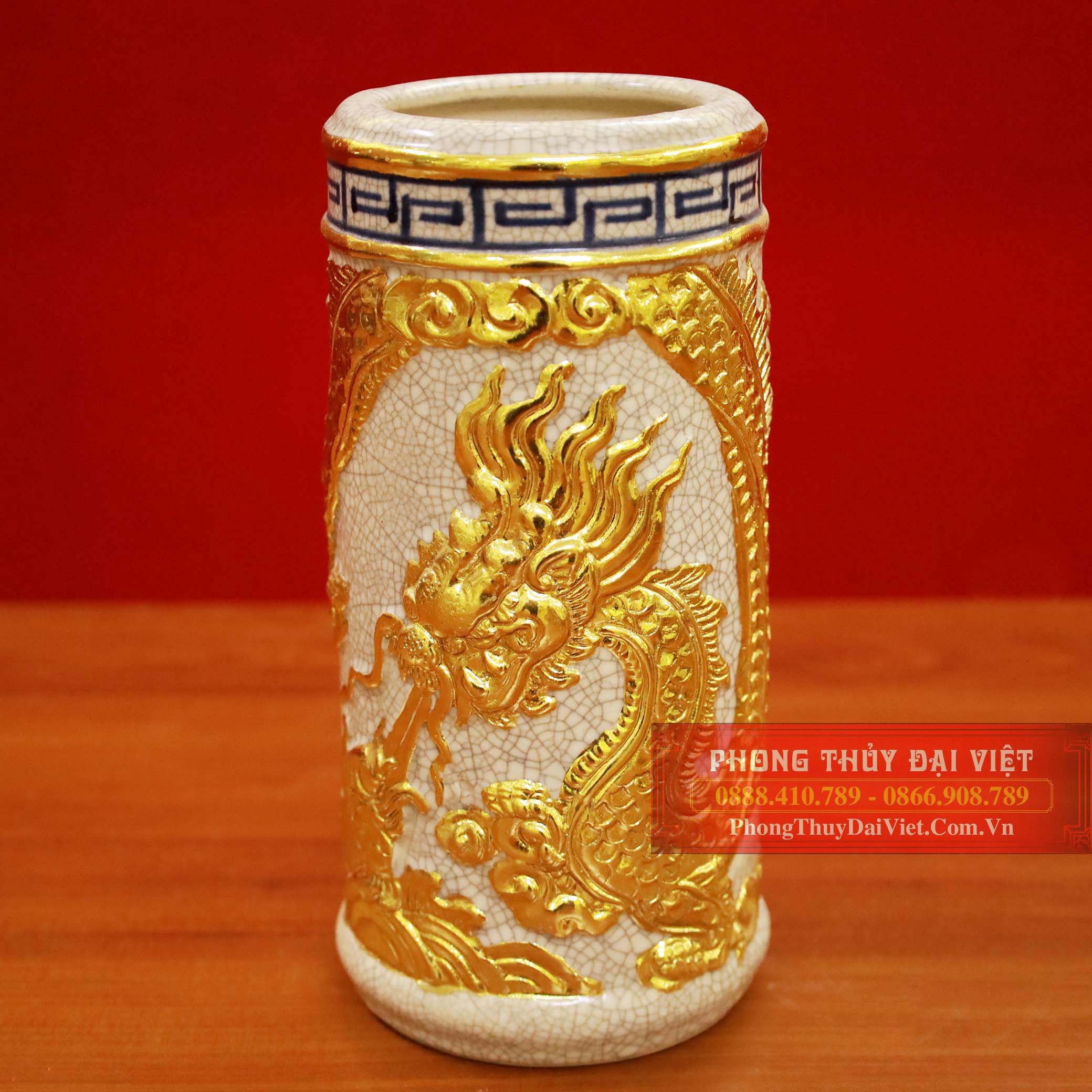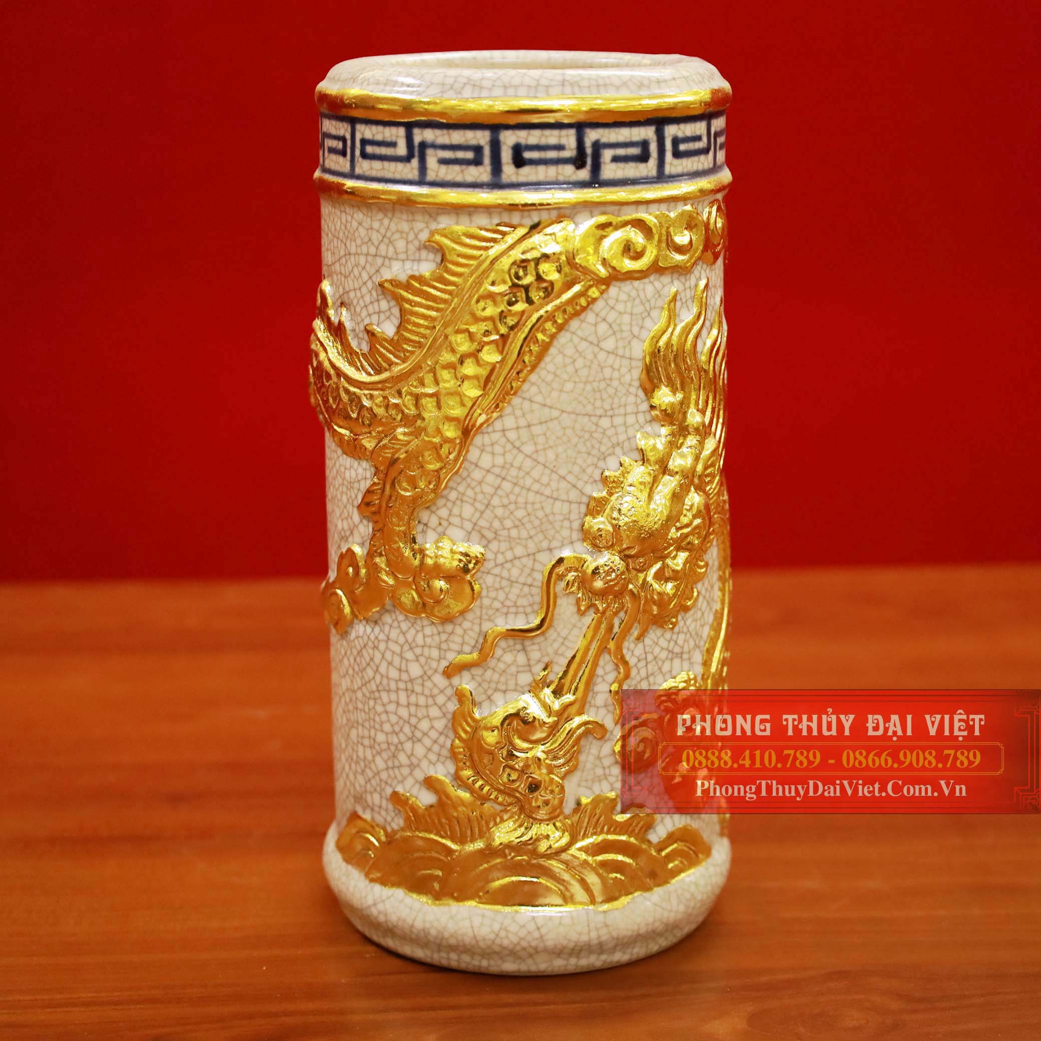 Ống hương rồng men rạn đắp nổi dát vàng 24k cao cấp
