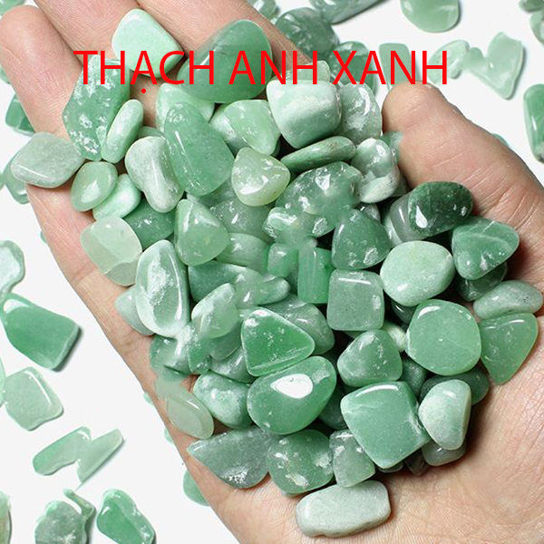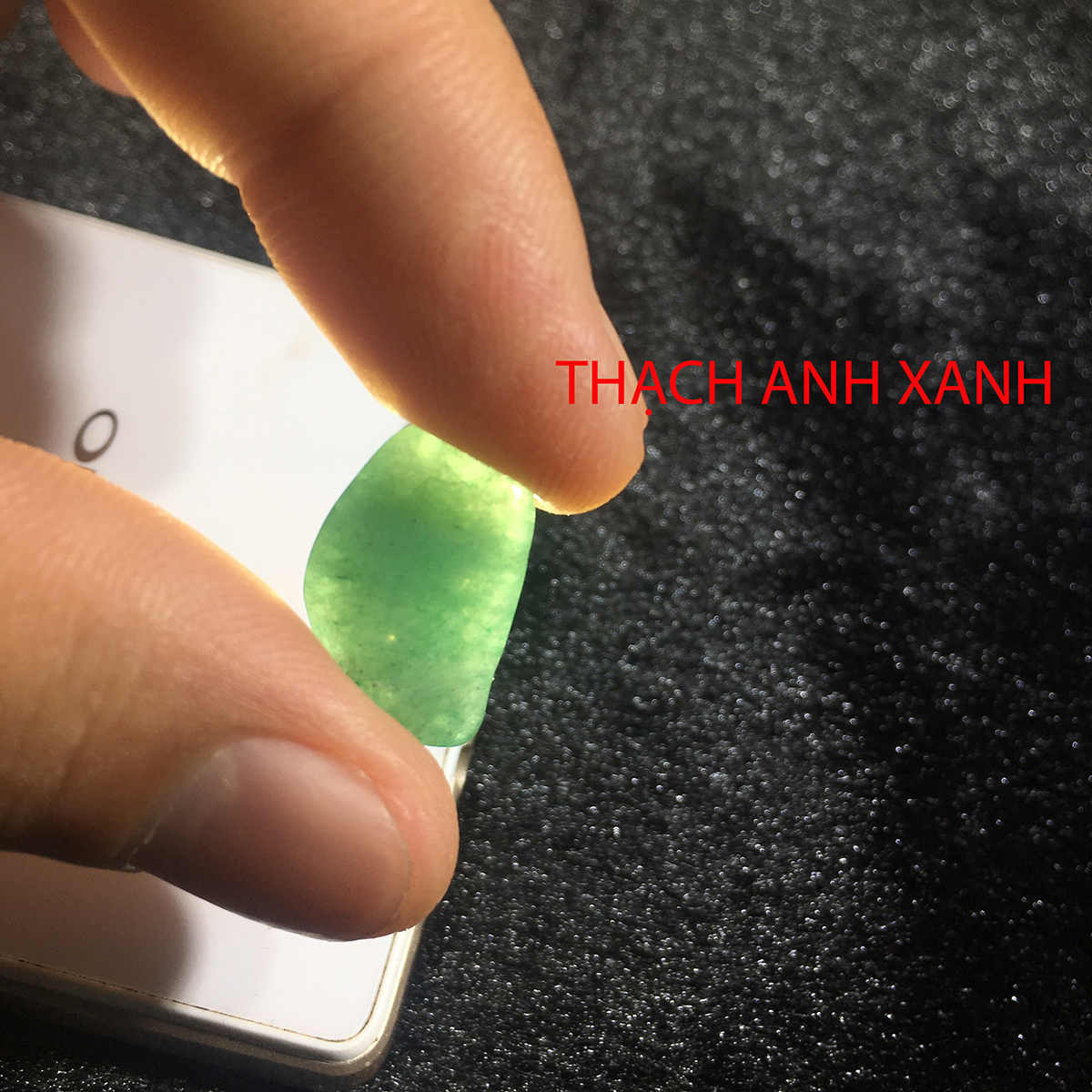 Thạch anh xanh khi soi đèn flash sẽ thấy rõ các chấm li ti khắp toàn bộ viên đá