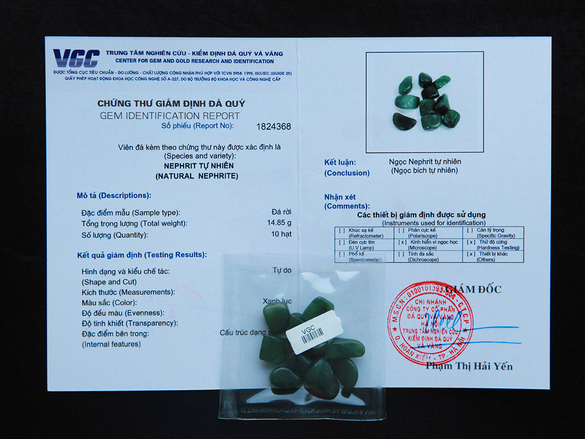 Linh Phẩm Phong Thủy sử dụng ngọc bích tự nhiên đã được kiểm định chất lượng tại trung tâm kiểm định uy tín VGC trong thành phần cốt thất bảo chuẩn.