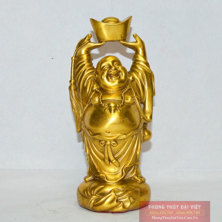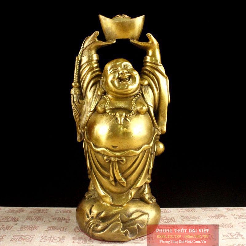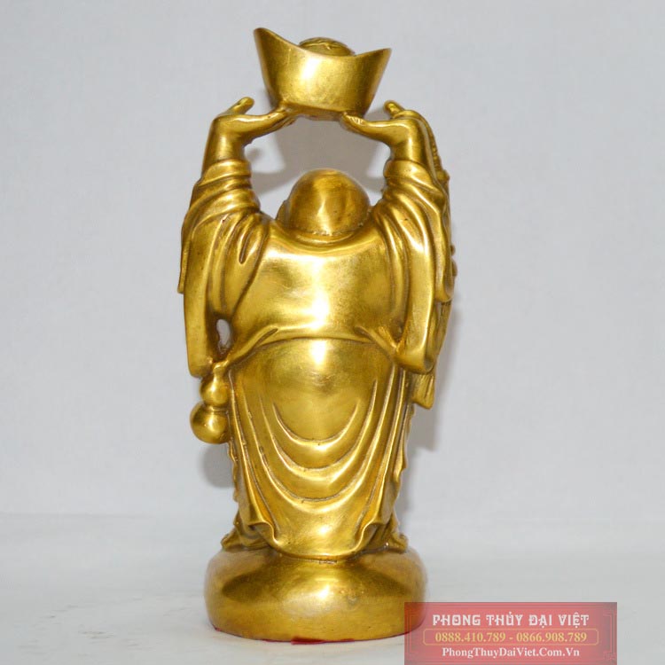 Phật di lặc nâng đĩnh vàng đồng nguyên chất 19x8.5cm - 0.75kg
