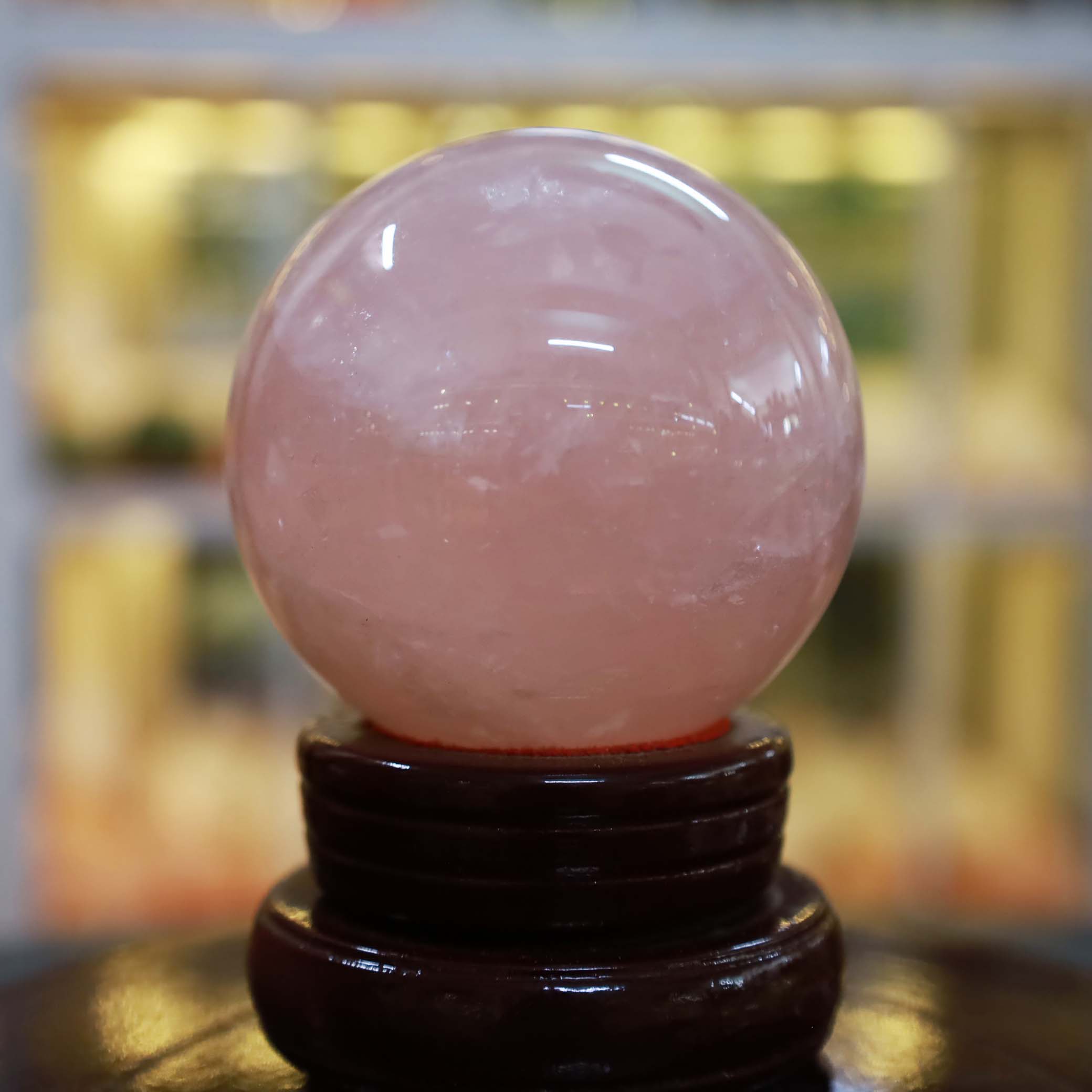 Quả cầu thạch anh hồng là vật phẩm phong thuỷ khối cầu, được chế tác từ đá thạch anh hồng hoàn toàn tự nhiên. Đá thạch anh hồng là một dạng đá quý của họ đá thạch anh. Đá có màu hồng nhạt, có độ trong suốt mờ và bóng. Thạch anh là một trong số các loại đá quý được yêu thích nhất hiện nay không chỉ bởi vẻ đẹp nhẹ nhàng, dịu êm mà còn vì nó là biểu tượng cho tình yêu, hạnh phúc.