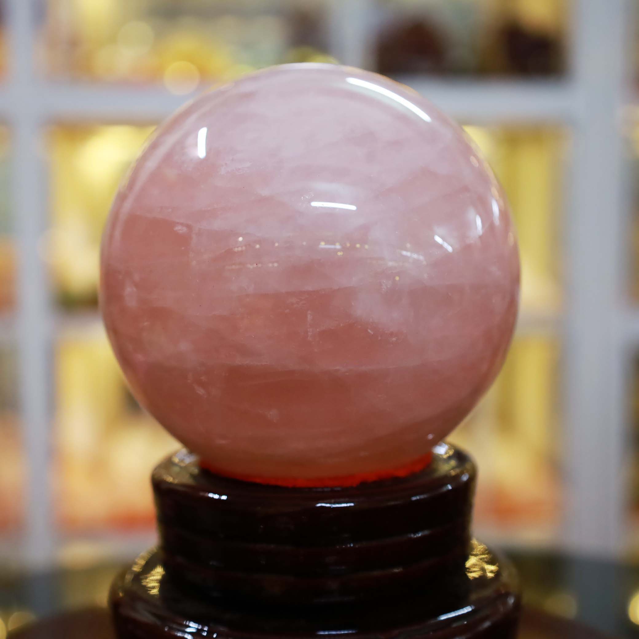 Quả cầu thạch anh hồng là vật phẩm phong thuỷ khối cầu, được chế tác từ đá thạch anh hồng hoàn toàn tự nhiên. Đá thạch anh hồng là một dạng đá quý của họ đá thạch anh. Đá có màu hồng nhạt, có độ trong suốt mờ và bóng. Thạch anh là một trong số các loại đá quý được yêu thích nhất hiện nay không chỉ bởi vẻ đẹp nhẹ nhàng, dịu êm mà còn vì nó là biểu tượng cho tình yêu, hạnh phúc.