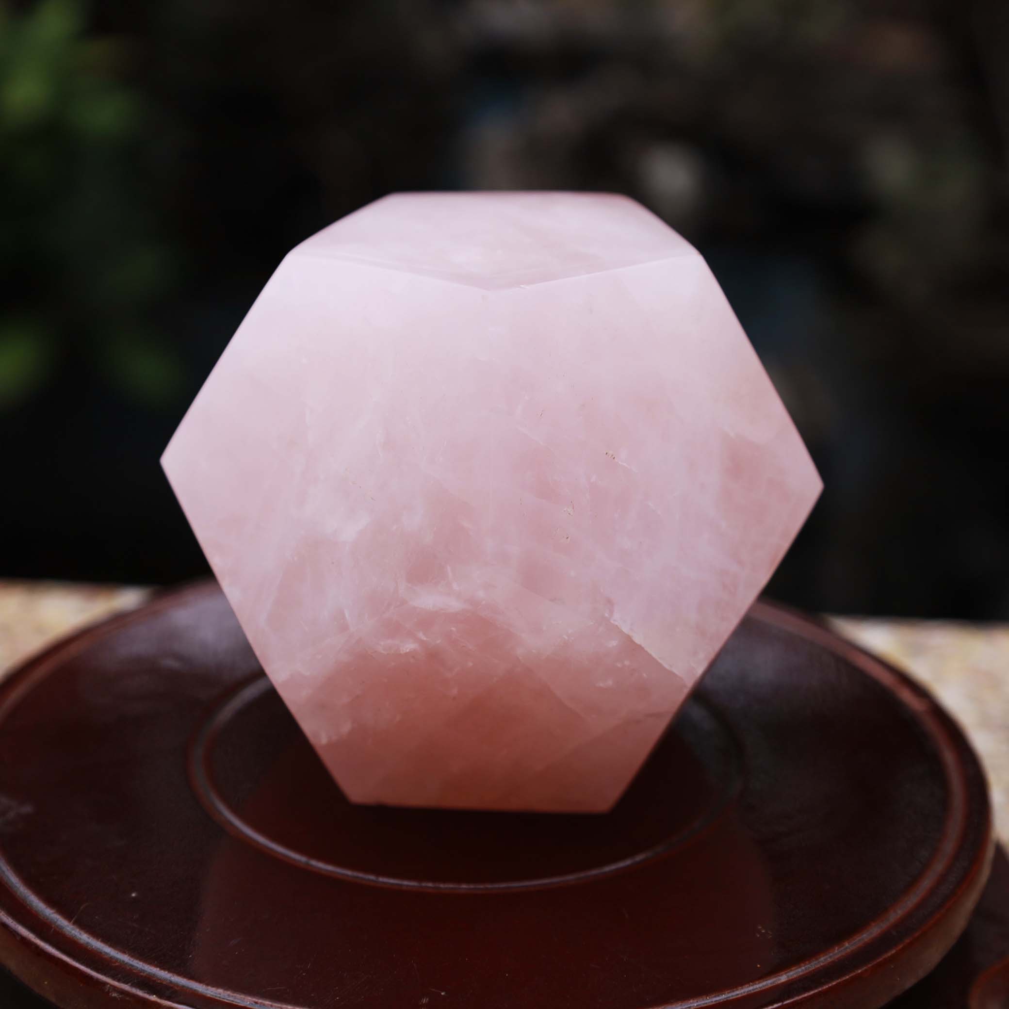 Quả cầu thạch anh hồng vát 12 mặt cao 8.5cm-1.1kg-MTA484