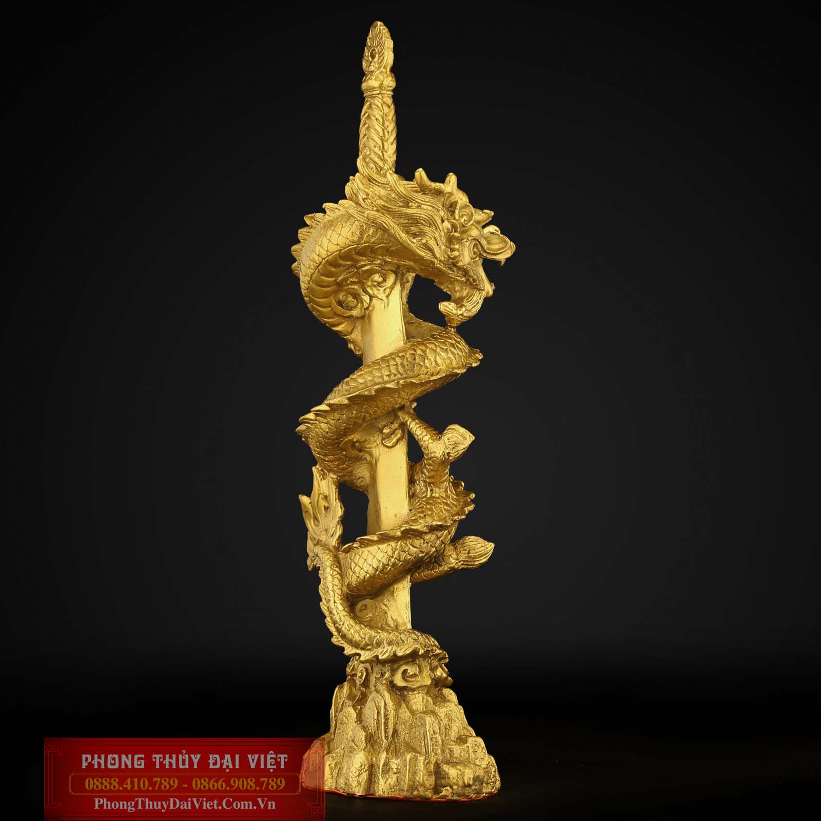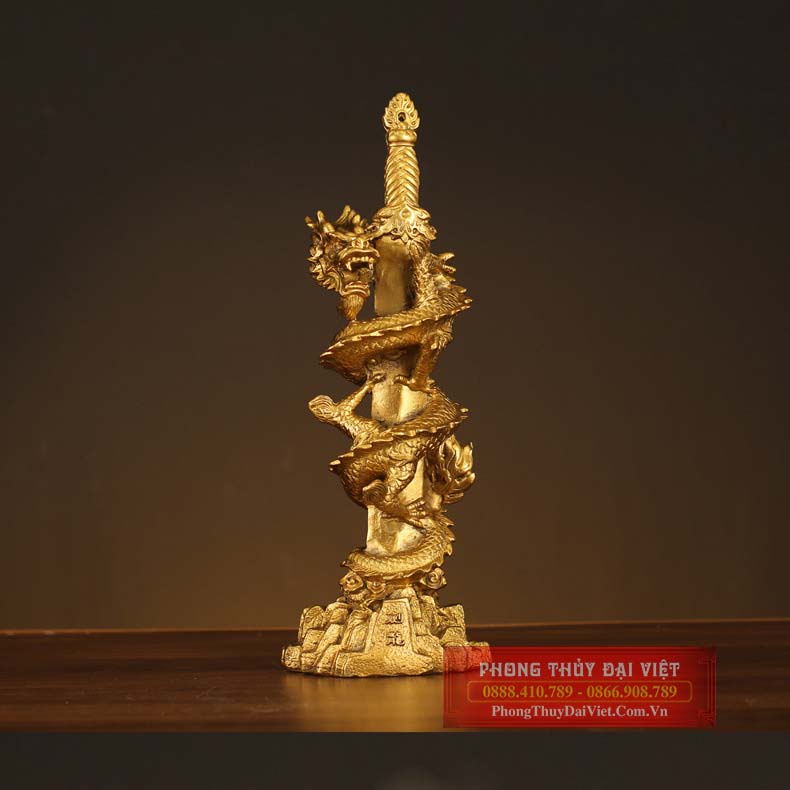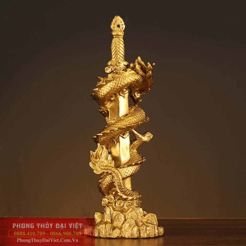 Sản phẩm là hình ảnh Thanh Long – tức rồng cuộn tròn quanh thanh kiếm. Với tạo hình khuôn miệng há rộng, nhe nanh, đôi mắt hung dữ để trừ tà hoá sát. Chân giữ chặt kiếm, tượng trưng cho uy quyền, sức mạnh và tài lộc. Thanh kiếm được chạm nổi hình thất tinh bắc đẩu thể hiện có quý nhân phù trợ.