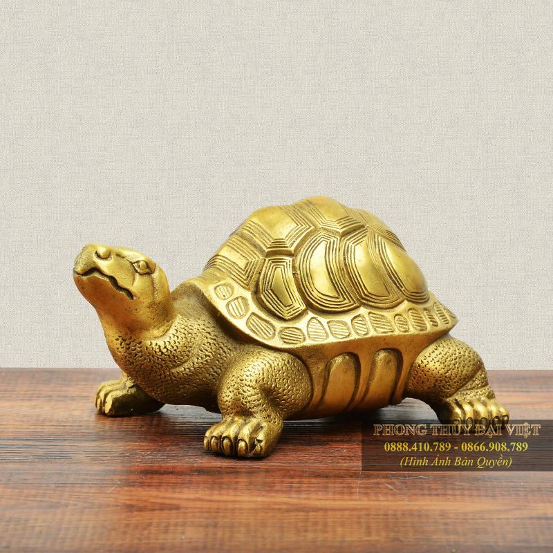 Rùa hay còn gọi là Kim Quy được chế tác tinh xảo từ đồng nguyên chất là vật phẩm phong thuỷ có ý nghĩa giúp tăng tài lộc, tăng vượng khí cho gia chủ.