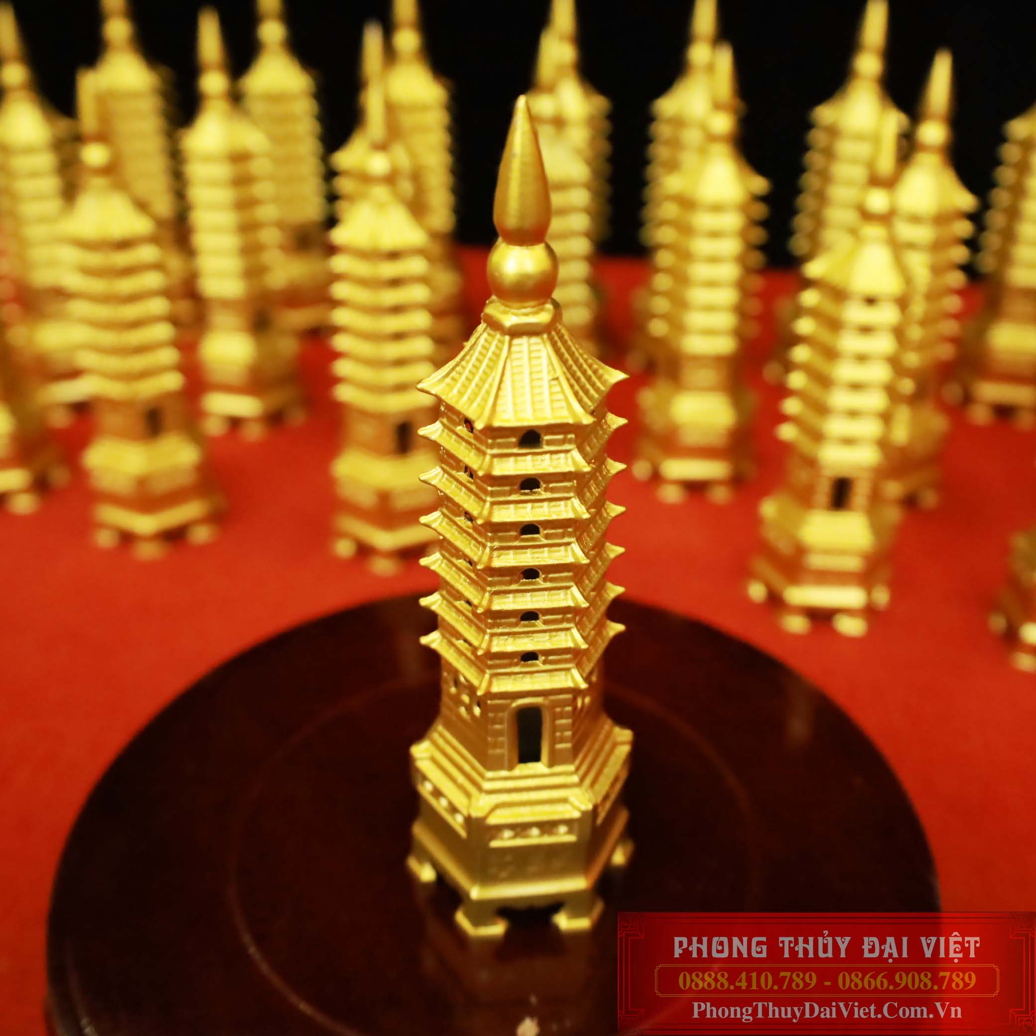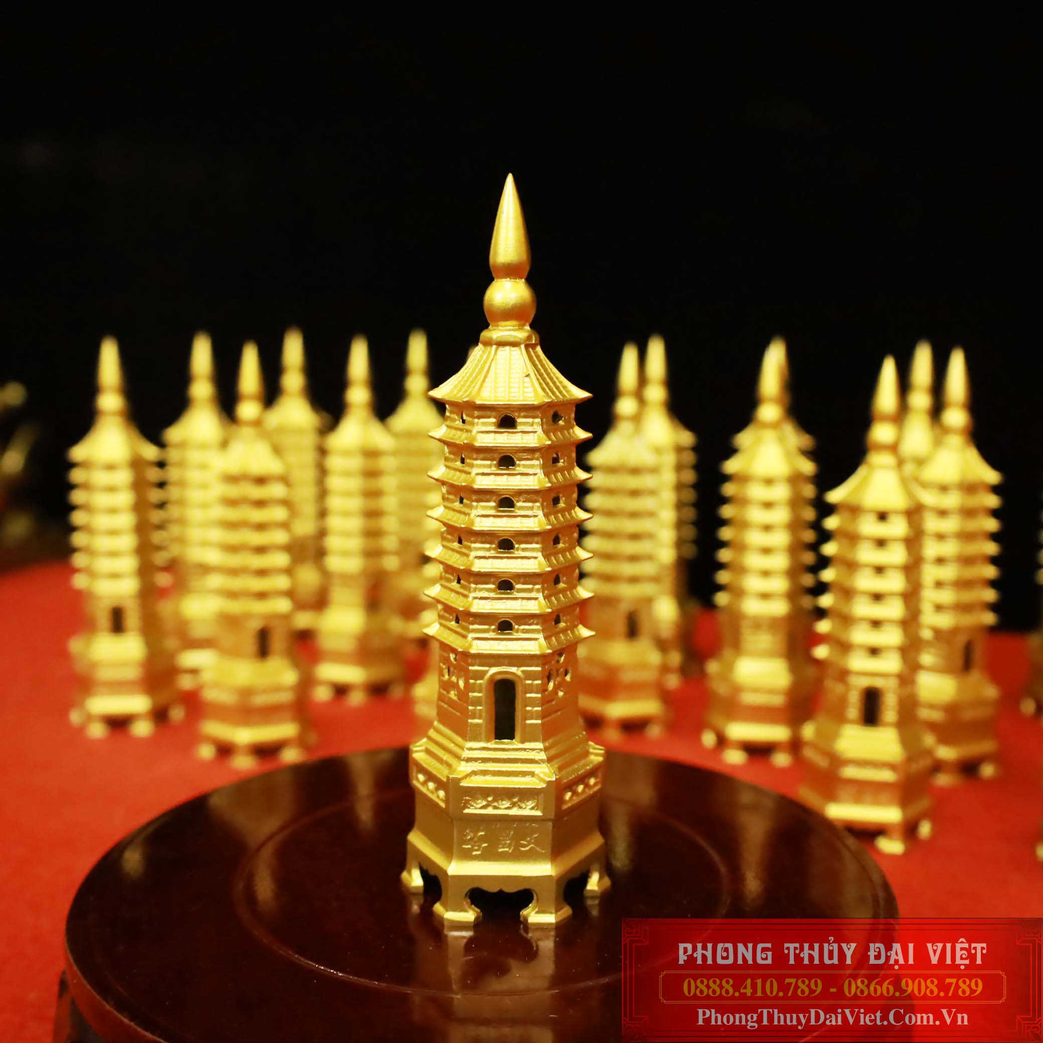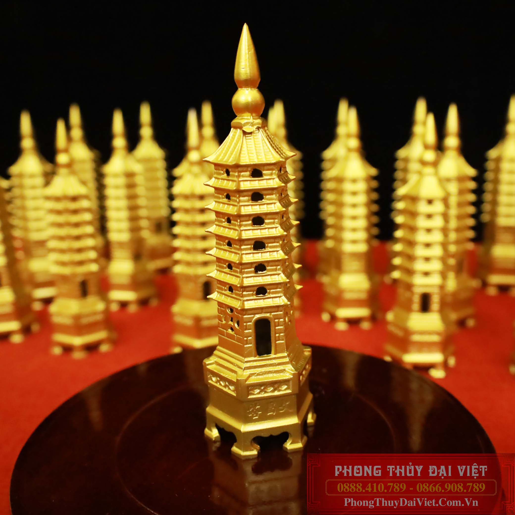 Tháp văn xương đồng vàng 7 tầng 16cm