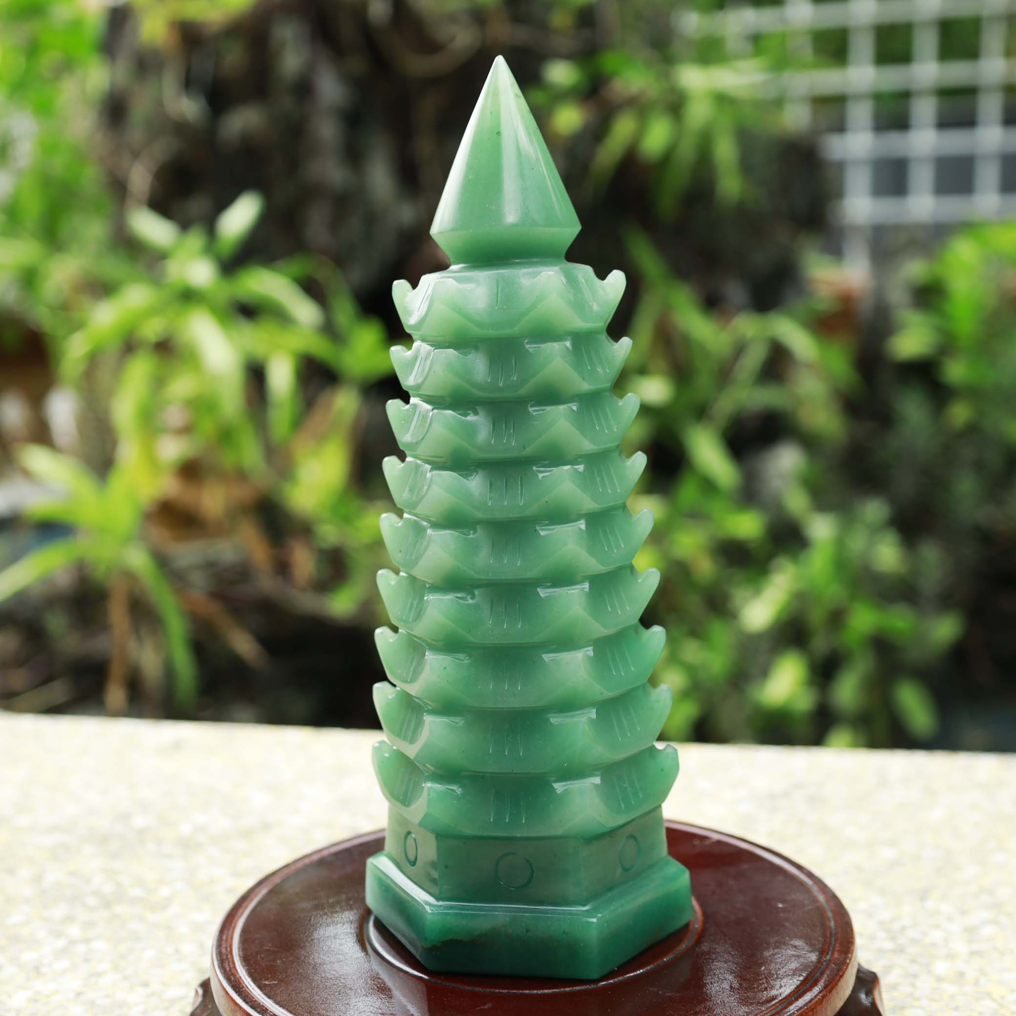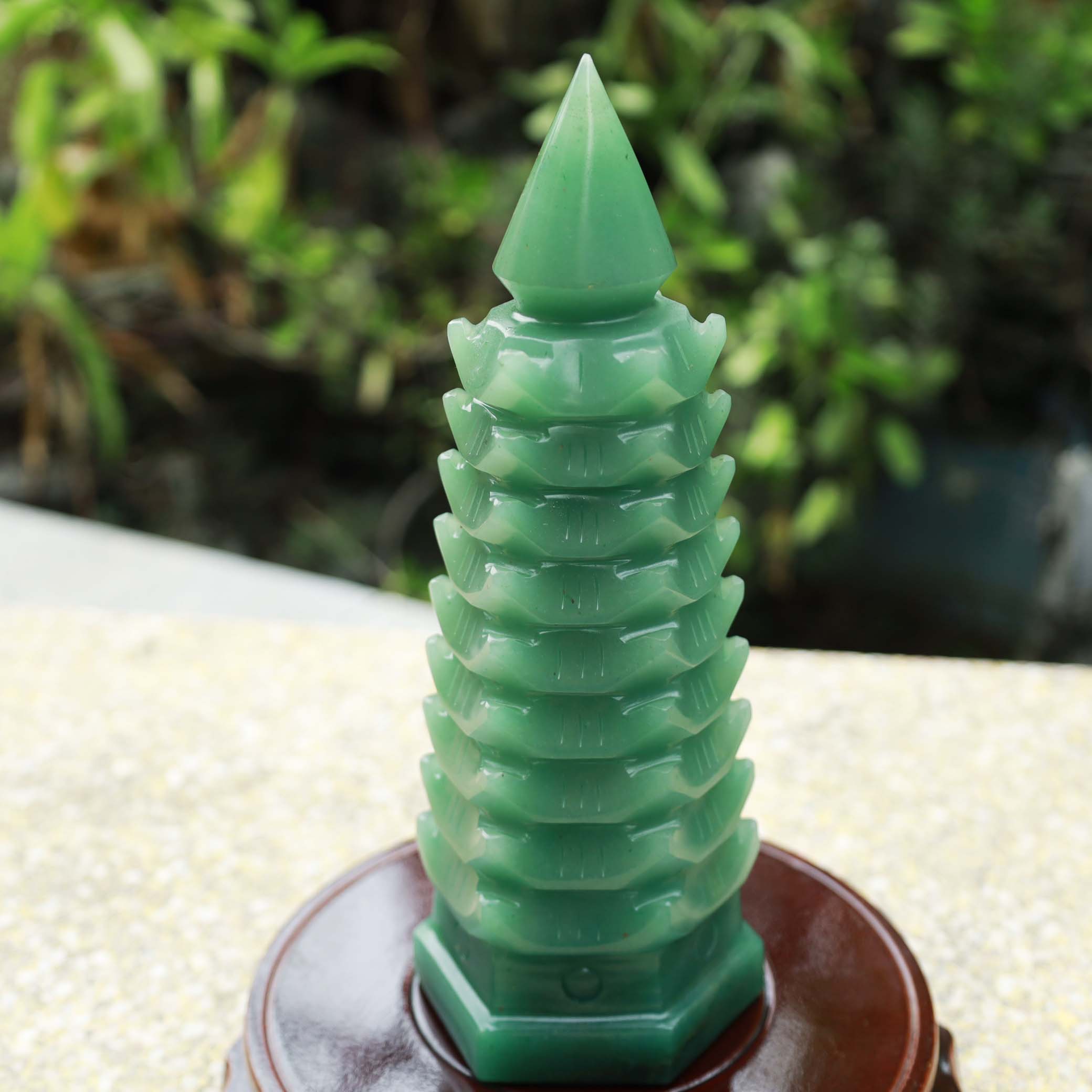 Tháp văn xương thạch anh xanh tự nhiên 9 tầng-21.5cm-1.45kg-MTA288