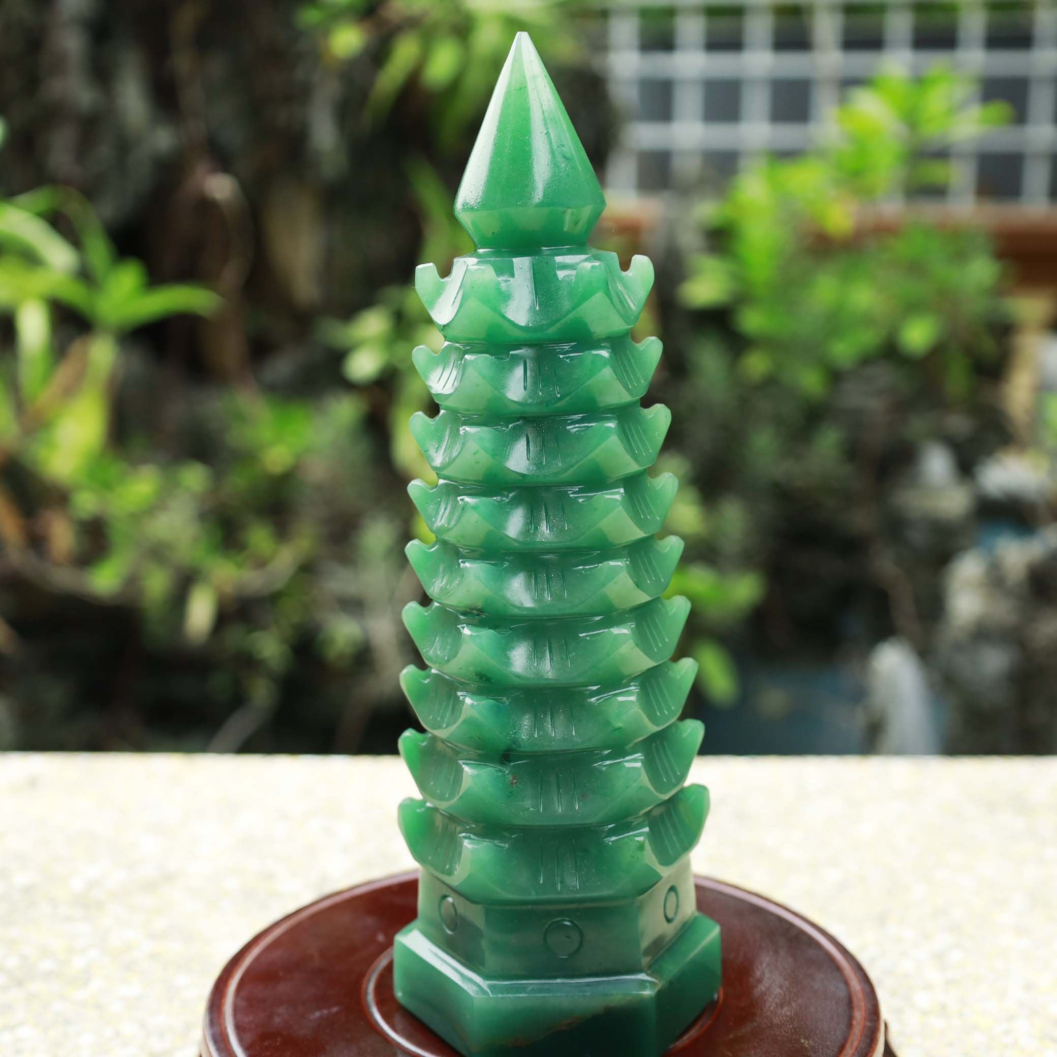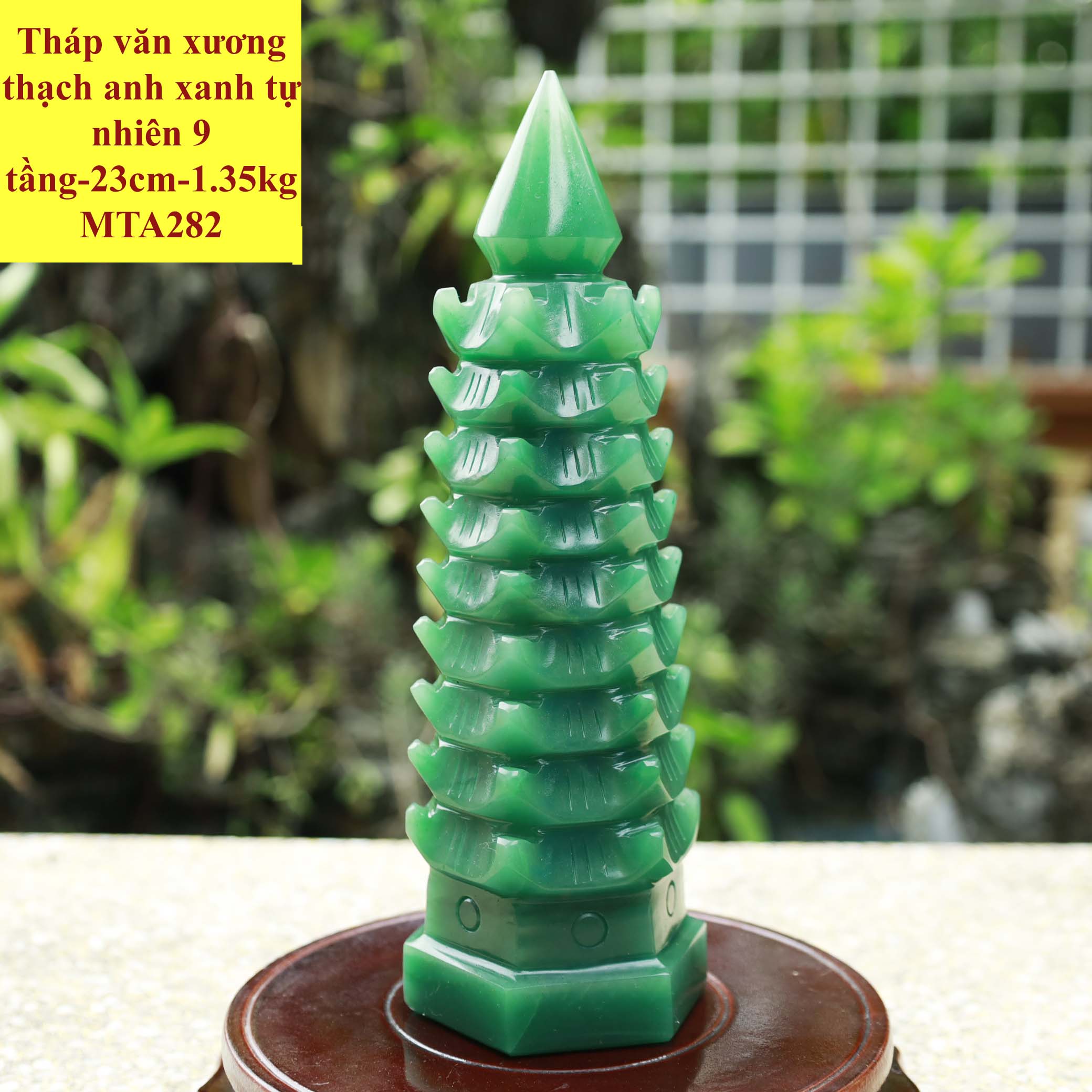 Tháp văn xương thạch anh xanh tự nhiên 9 tầng - 23cm - 1.35kg - MTA282