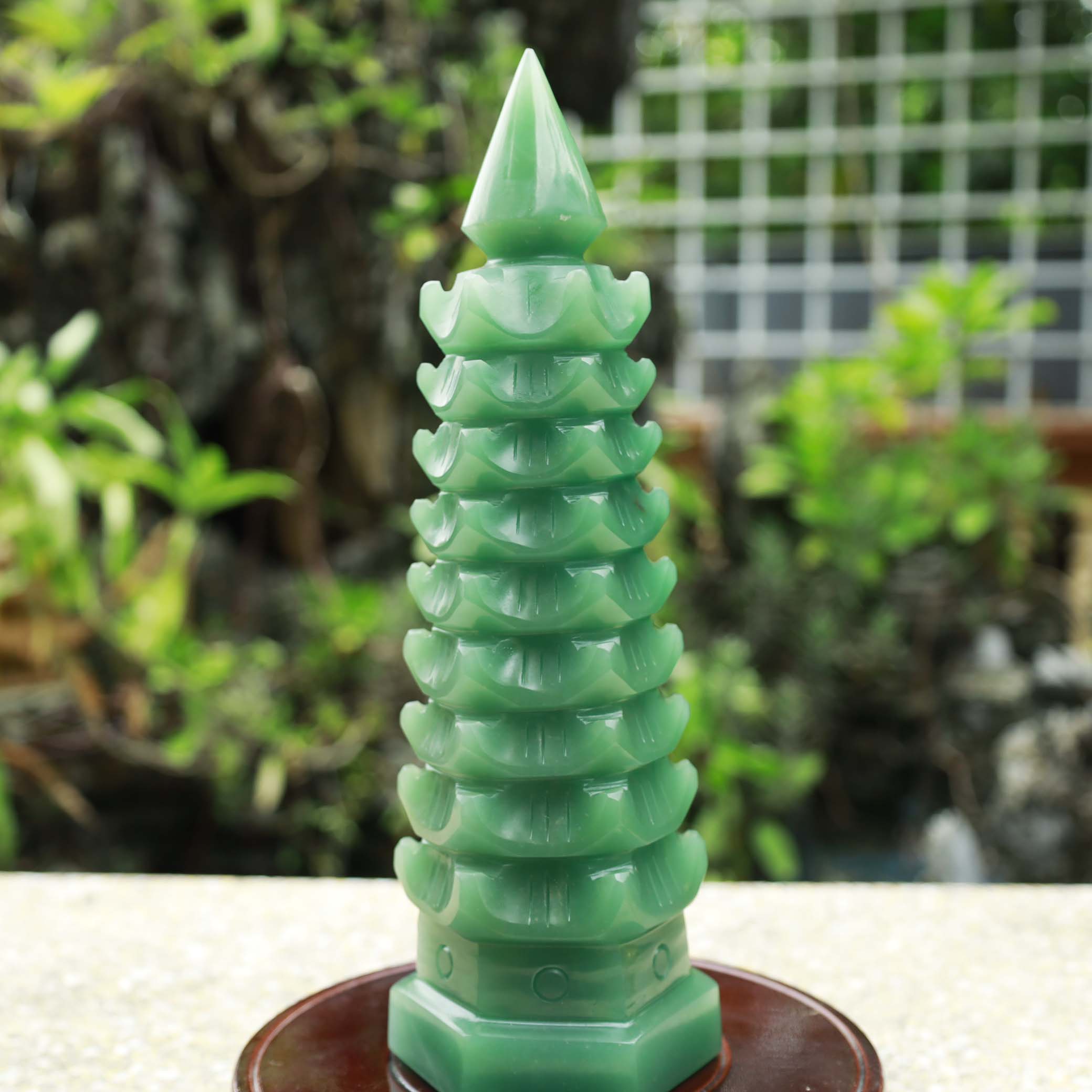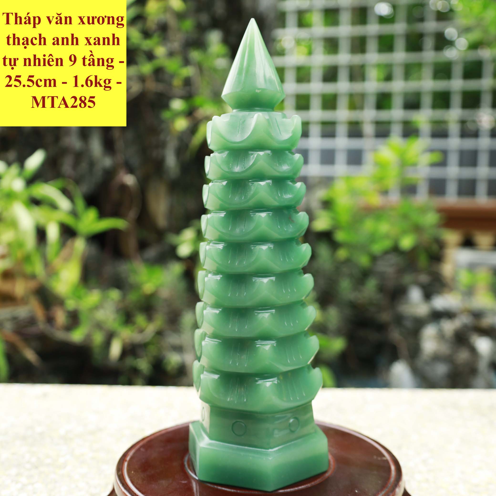 Tháp văn xương thạch anh xanh tự nhiên 9 tầng-25.5cm-1.6kg-MTA285