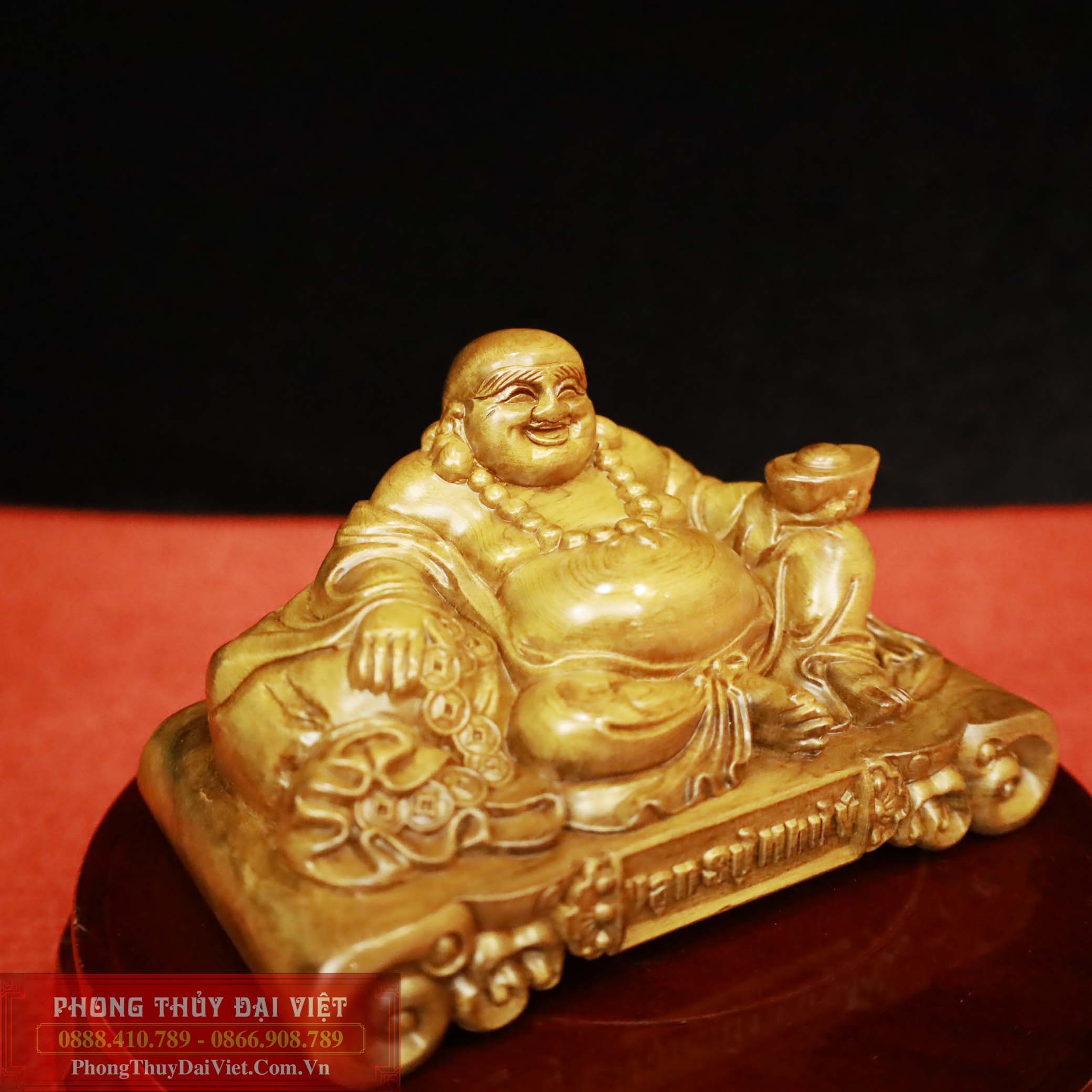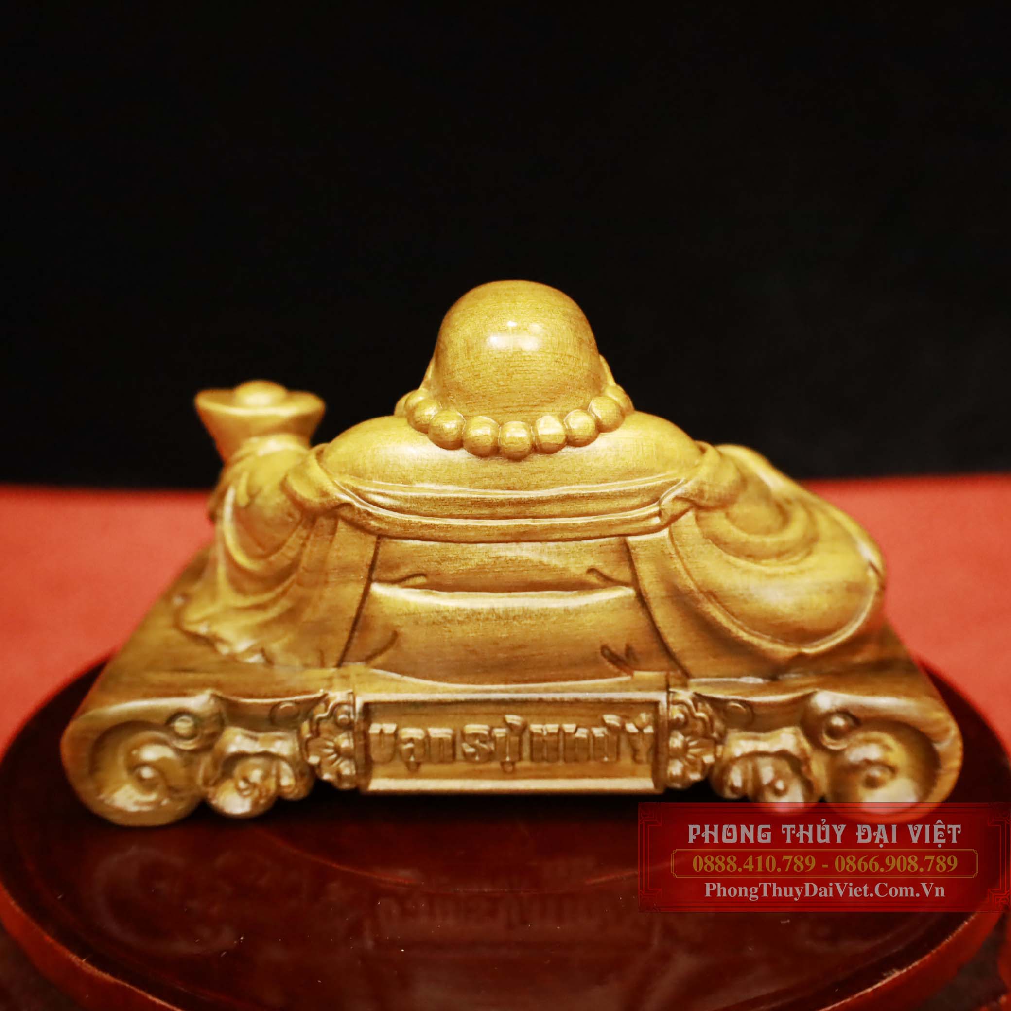 Di Lặc ngồi trên tấm phản khắc chữ "vạn sự như ý" biểu thị ý chí và quyết tâm để đạt được mọi ước nguyện và mong muốn. Đây là một biểu tượng của sự thành công và thịnh vượng trong cuộc sống.