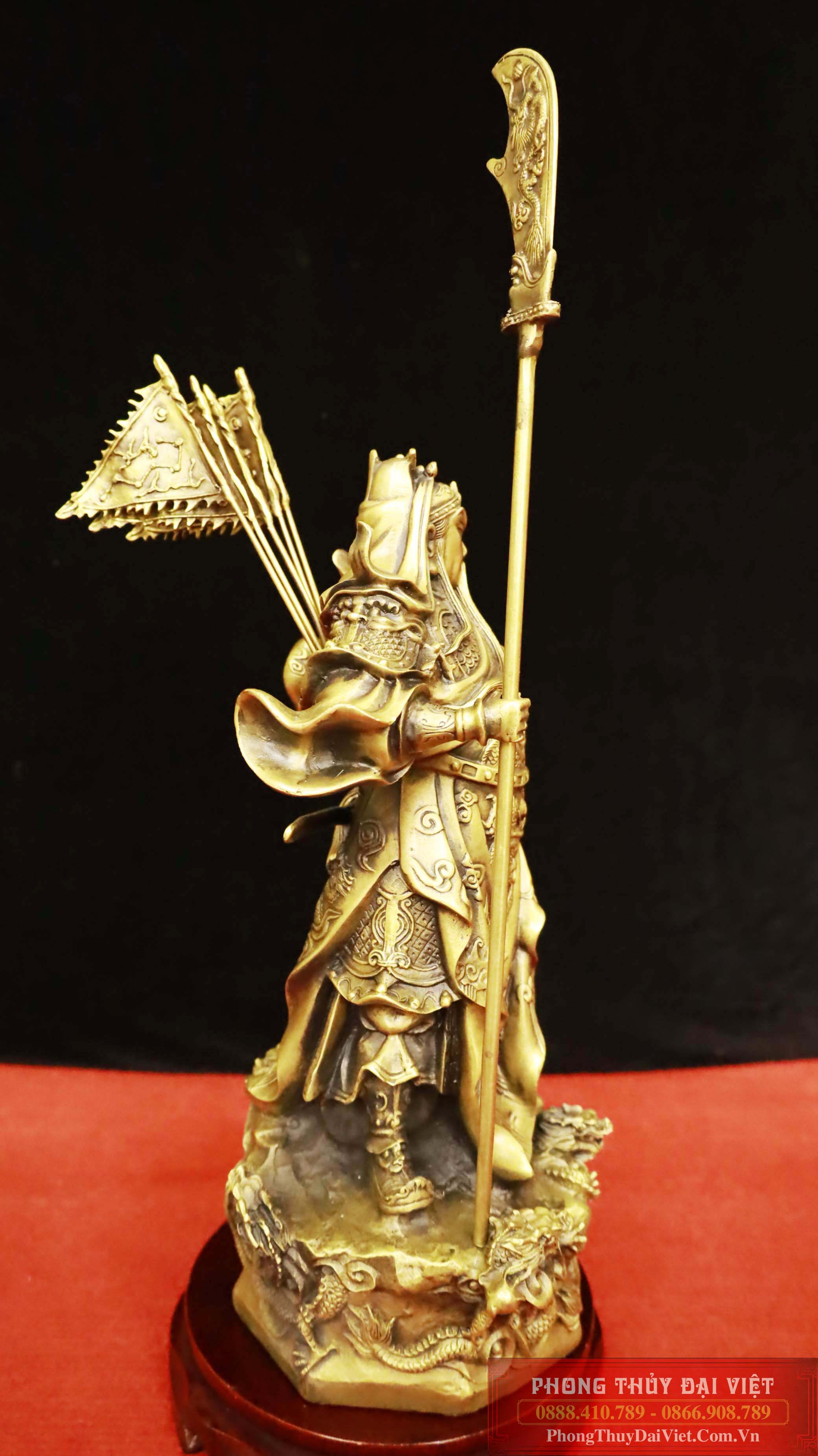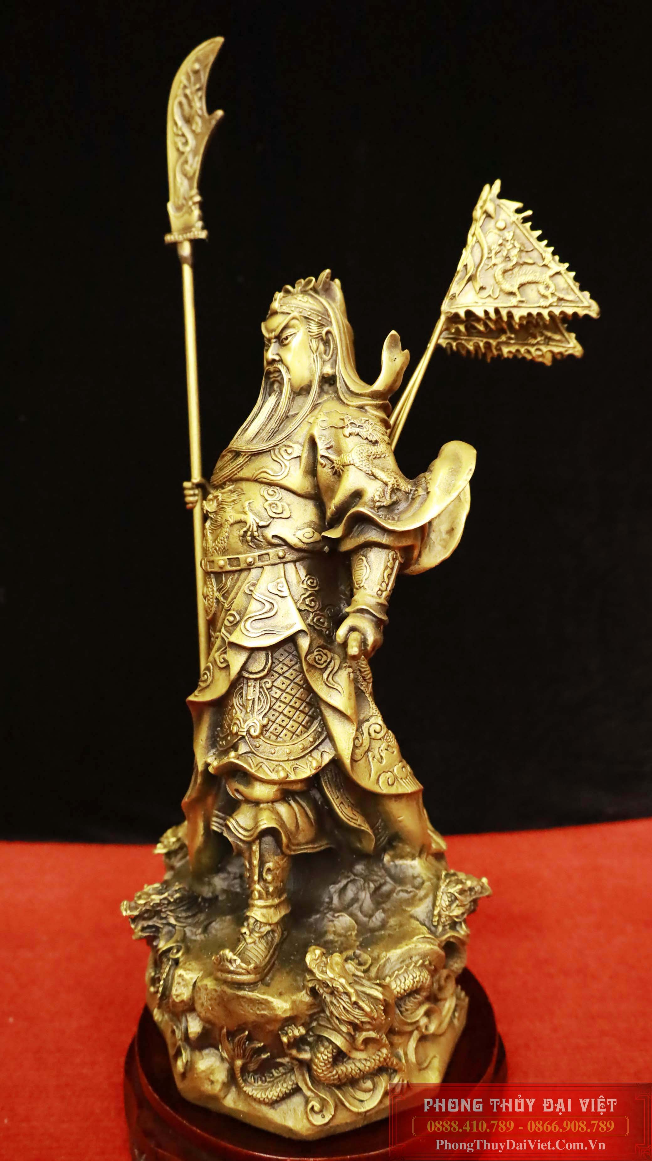 Tượng quan công đứng bệ rồng đồng nguyên chất 38x19x15cm - 4.35kg